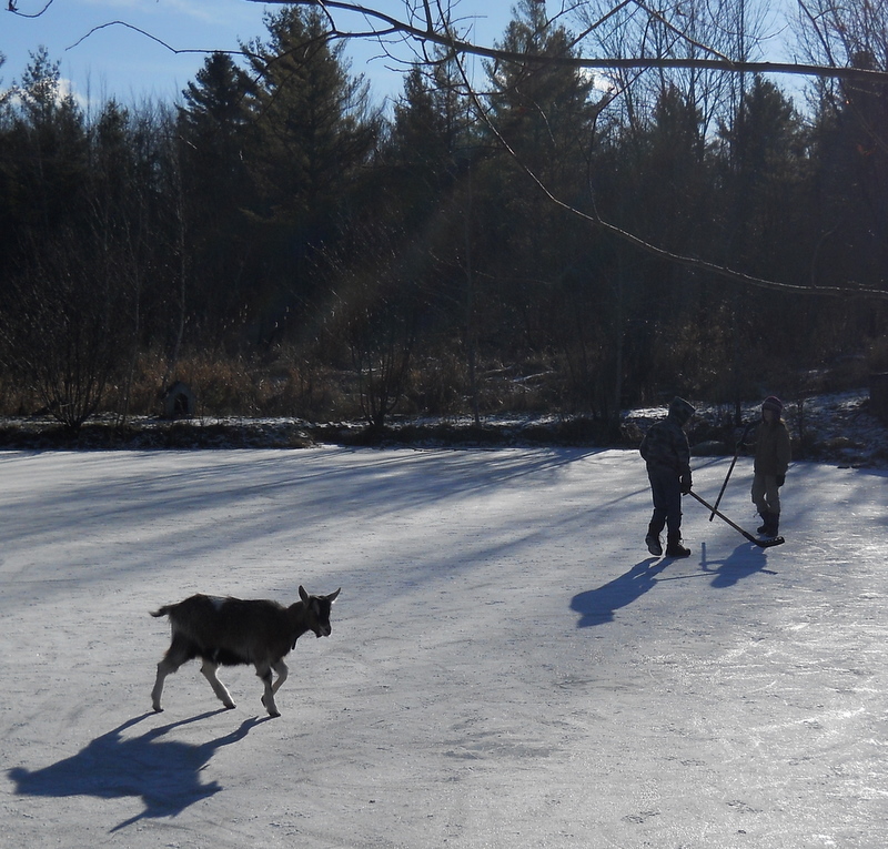 I LOVE that last photo! We only have cats that come onto our ice rink (when we HAVE an ice rink), and we are amused when they park themselves in front of the hockey nets, looking for all the world like goalies.