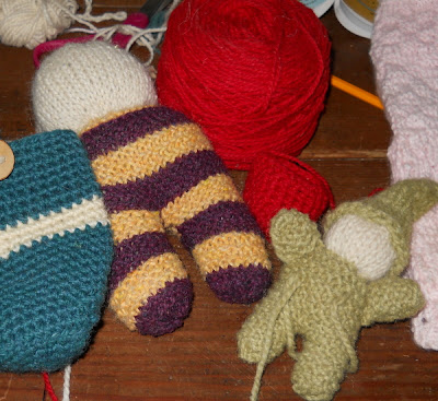 With the last few days being rainy and raw, I have been busy making - crocheting water bottle covers, knitting gnomes and dolls and mixing up laundry detergent and bugs spray.